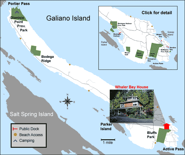 Whaler Bay House is a unique four bedroom country home and cozy cottage across from Whaler Bay on Galiano Island - the hidden jewel of the Gulf Islands, British Columbia, Canada. Less than an hour by ferry from the Vancouver mainland, Galiano Island is the first ferry stop enroute to the Gulf Islands. Galiano can also be reached readily from Vancouver Island via the Gulf Islands ferry.