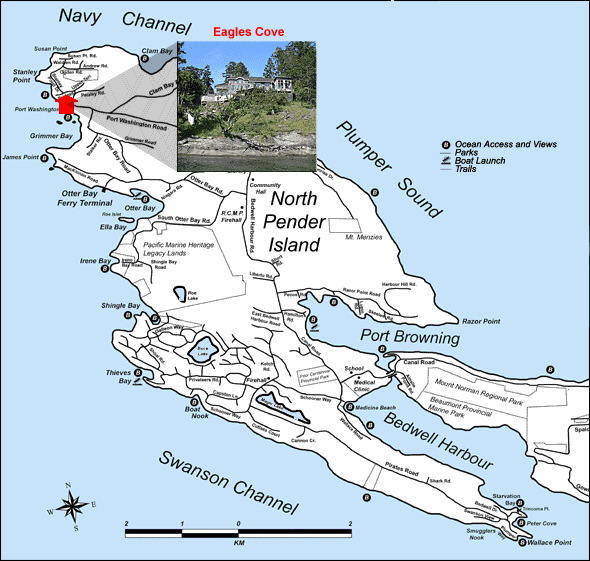 Eagles Cove on North Pender Island is a low bank oceanfront residence situated on fenced and landscaped grounds of more than two-thirds of an acre. There is a spectacular year round garden. The property is located in the village of Port Washington just above the Grimmer Bay public dock.