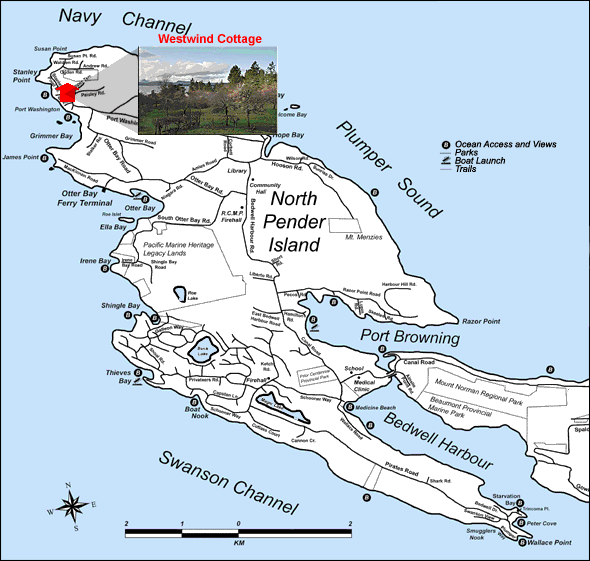 Westwind Cottage is a newly renovated 2 bedroom home located in historic Port Washington. Relax on the sunny deck while enjoying ocean views and the scenery of the property's one acre orchard and spectacular rock garden.